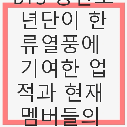 👉BTS 방탄소년단이 한류열풍에 기여한 업적과 현재 멤버들의 상황 확인하기멤버들의 현재 상황