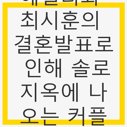 최근 연예계에서는 결혼 소식이 잇따르고 있습니다. 특히 솔로지옥으로 유명한 최시훈과 에일리의 결혼 발표는 많은 이들에게 큰 화제를 모으고 있습니다. 이들의 결혼 발표는 단순히 개인적인 소식에 그치지 않고, 현재 솔로지옥에 출연한 다른 커플들에게도 여러 가지 영향을 미치고 있다는 점에서 주목할 만합니다. 연애를 시작하는 사람들과 결혼을 고려하는 커플들에게는 이들의 사랑 이야기가 긍정적인 영감을 줄 수 있습니다.